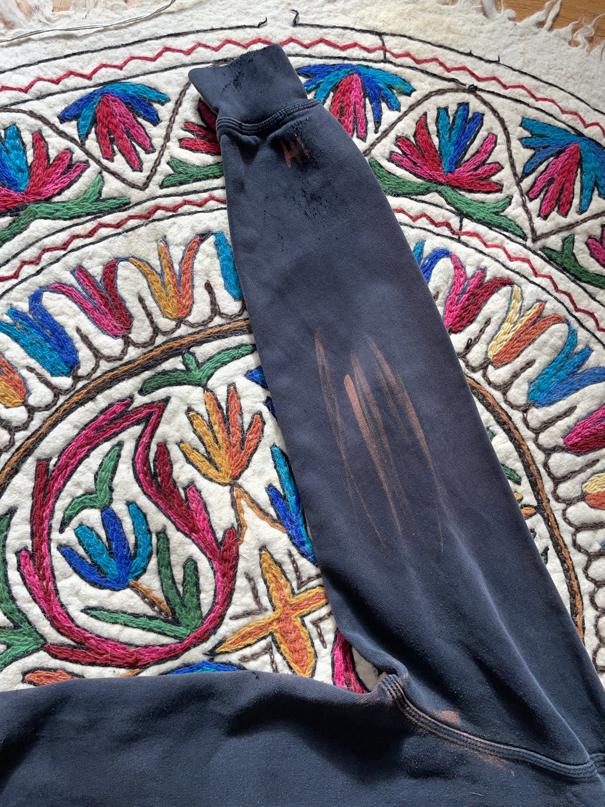 Hand distressed, Sun bleached and light Bleach dyed artwork