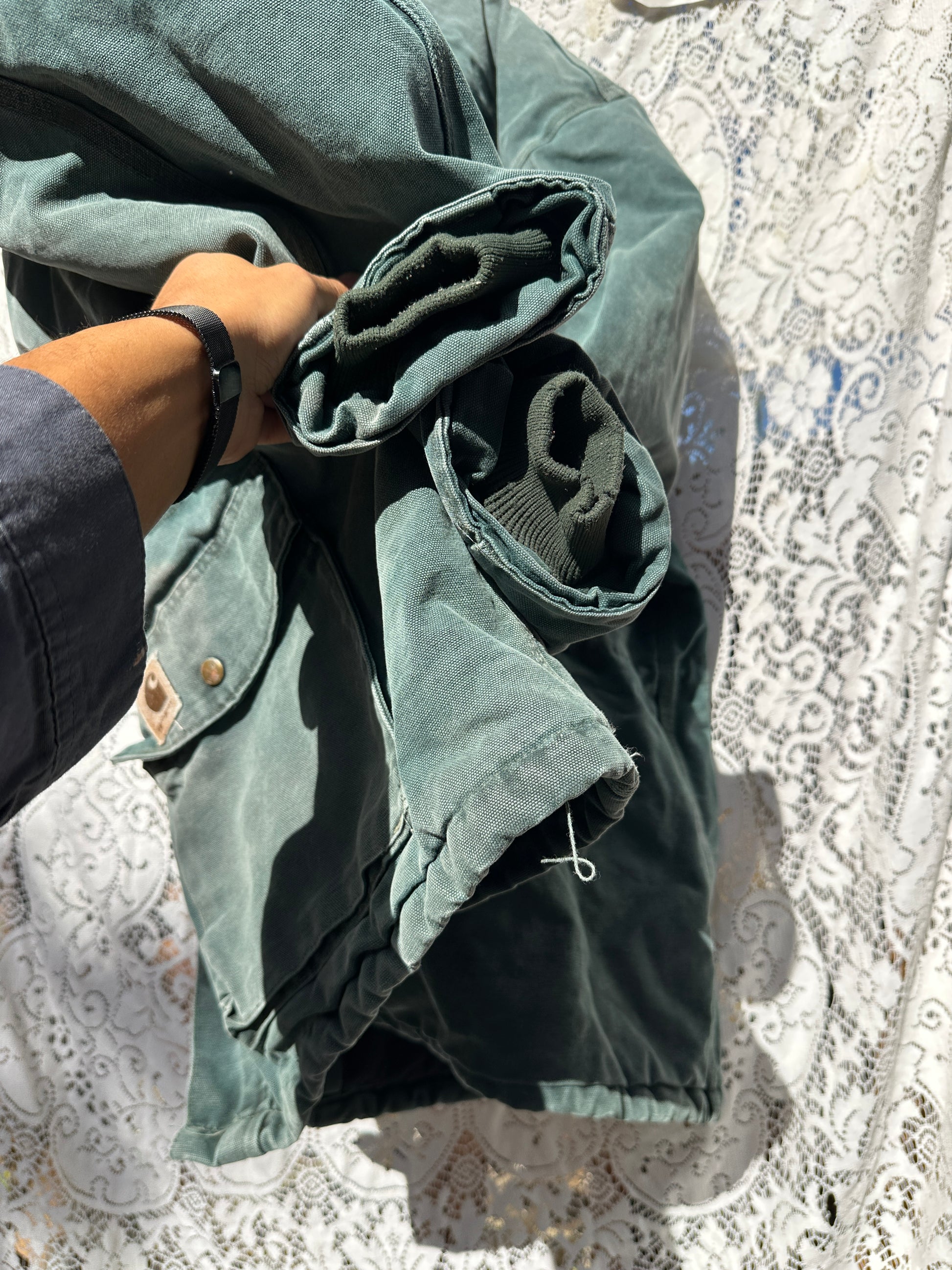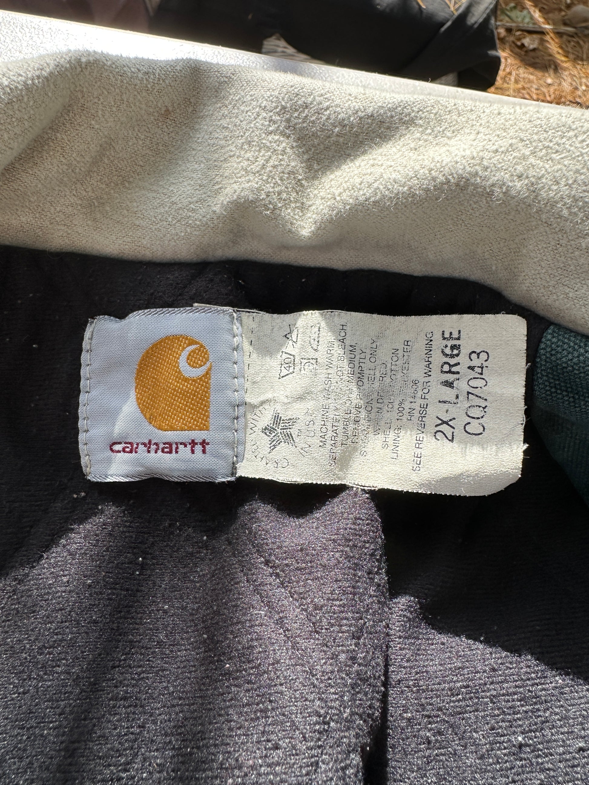 Mens Vintage Carhartt CQ7043 Green teal Canvas Quilt Lined Chore Barn Jacket XXL 2XL USA